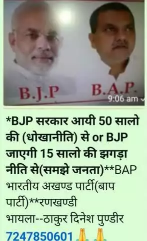 जयःहिन्द जय भारत***जय बाप पार्टी**रणखण्डी भायला 7247850601
