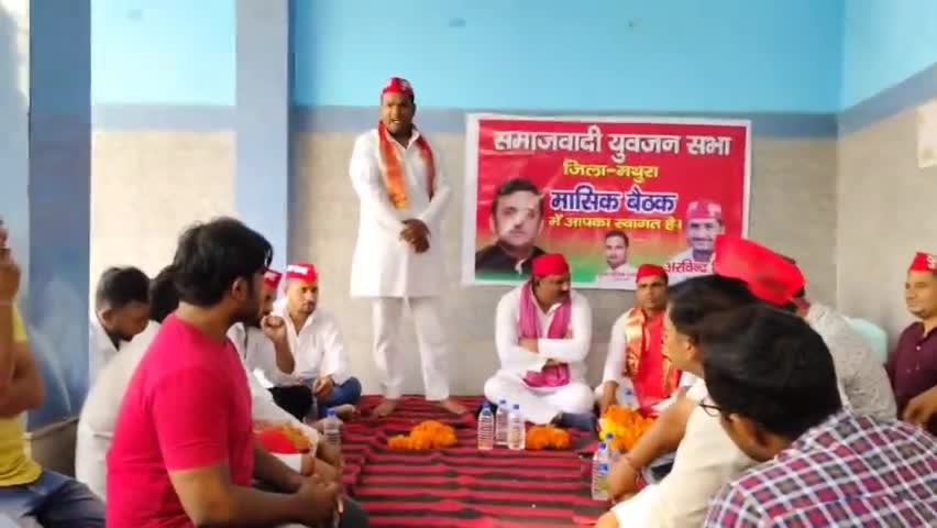 मथुरा जिला समाजवादी युवजन सभा की बैठक में जिला अध्यक्ष मुन्ना मलिक पार्षद का संबोधन।