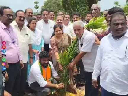 Mega #OilPalm Plantation Drive held in Nellipudi, AP—1,807 saplings planted on 12.6 acres with 188 farmers. #AgriGoI