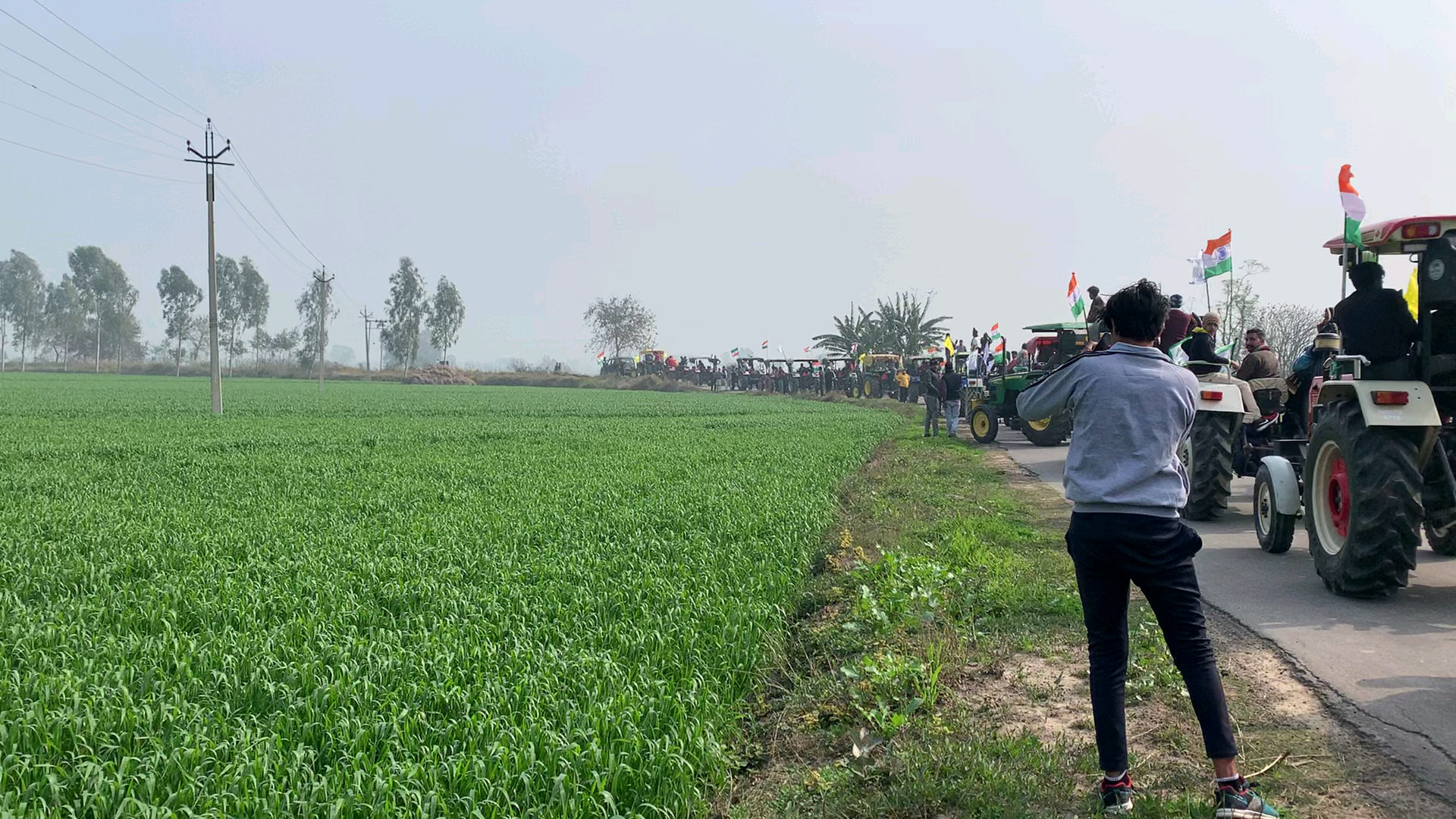 कुरुक्षेत्र के गांव बारना में आज किसान अन्नदाता ने दिल्ली कुछ करने से पहले निकाला गांव में ट्रैक्टर मार्च