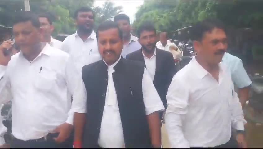 धनघटा विधायक गणेश चौहान मुर्दाबाद के नारा लगाते अधिवक्ता......
