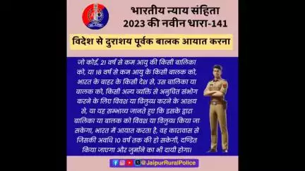 #Jaipur_Rural: भारतीय न्याय संहिता 2023 की नवीन धारा-141: विदेश से दुराश्य पूर्वक बालक आयात करना।