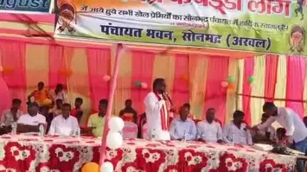 सोनभद्र में कबड्डी मैच का उद्वघाटन समारोह को सम्बोधित करते जेडीयू नेता छात्र नेता यश वर्मा उर्फ़ उत्तम कुशावाहा
