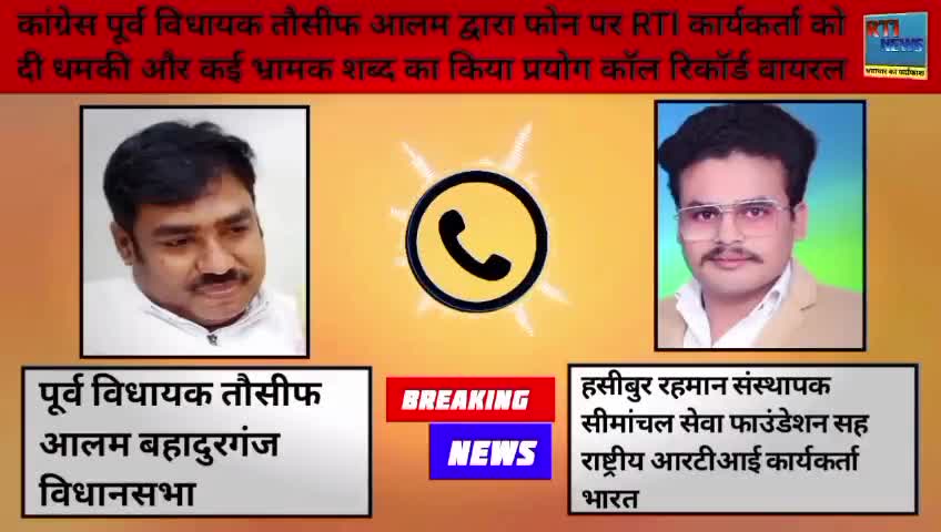 कांग्रेस पूर्व विधायक तौसीफ आलम MLA Tauseef Alam द्वारा फोन पर RTI कार्यकर्ता को दी धमकी और कई भ्रामक शब्द का किया प्रयोग कॉल रिकॉर्ड वायरल। #wiralpost #bahadurganj #kishanganj