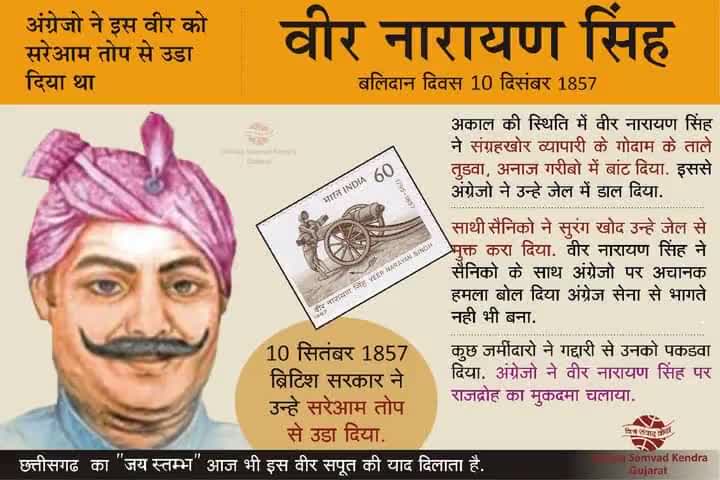 छत्तीसगढ़ के प्रथम शहीद स्वतन्त्रता संग्राम सेनानी वीर नारायण सिंह की शहादत दिवस पर शत शत नमन जोहार..!!