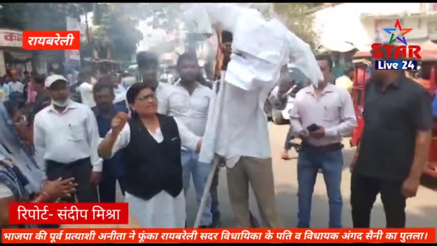 भाजपा की पूर्व प्रत्याशी अनीता ने फूंका रायबरेली सदर विधायिका के पति व विधायक अंगद सैनी का पुतला।
