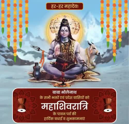 देवाधिदेव महादेव की आराधना को समर्पित पावन पर्व महाशिवरात्रि की देश वासियों एवं सभी श्रद्धालुओं को हार्दिक बधाई व शुभकामनाएं! भगवान भोलेनाथ और माता पार्वती की कृपा से सभी के मनोरथ पूर्ण हों, सृष्टि का कल्याण हो।