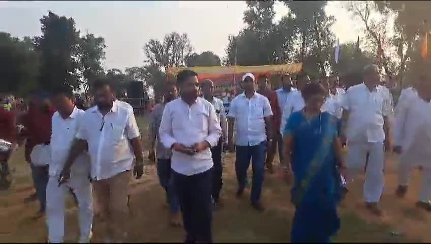 फुटबॉल खेल का आयोजन जागोडीह मैदान पर किया गया, उद्घाटन करता फीता काटने की ओर जा रहे हैं