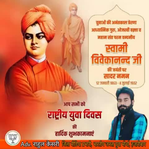 सनातन धर्म एवं भारतीय संस्कृति का परिचय सम्पूर्ण विश्व से कराने वाले सभी युवाओं के प्रेरणास्रोत तथा आध्यात्मिक गुरु स्वामी विवेकानंद जी की जयंती पर उन्हें शत-शत नमन। जय श्री राम।🚩