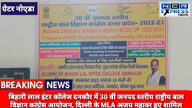 बिहारी लाल इंटर कॉलेज दनकौर में 30 वीं जनपद स्तरीय राष्ट्रीय बाल विज्ञान कांग्रेस का हुआ अयोजन।