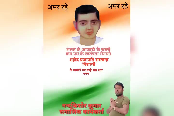 सबसे कम उम्र मे देश के लिए बलिदान देने वाले शहीद रामचन्द्र विद्यार्थी जी के जयंती पर नमन :- नन्दकिशोर कुमार प्रजापति