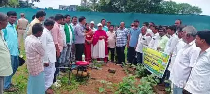 నానో యూరియా వాడండి..భూసారాన్ని కాపాడండి: జిల్లా కలెక్టర్ శ్రీమతి సత్య శారద ఉద్యాన పంటల్లో నానో యూరియా వినియోగించి భూసారాన్ని కాపాడుకోవాలని జిల్లా కలెక్టర్ డాక్టర్ సత్య శారద అన్నారు. బుధవారం గీసుగొండ మండలంలో డ్రోన్ ద్వారా తిమ్మాపురం శ్రీకాంత్ వరకాయ తోటలో (నానోయూరియా ) పచికారీ చేయించడం జరిగింది.