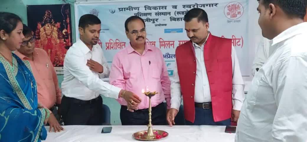 रुड़सेटी संस्थान (जडुआ, हाजीपुर) में एलुमिनी मीट के अवसर पर आयोजित कार्यक्रम का दीप प्रज्जवलित कर उद्घाटन करते ।
