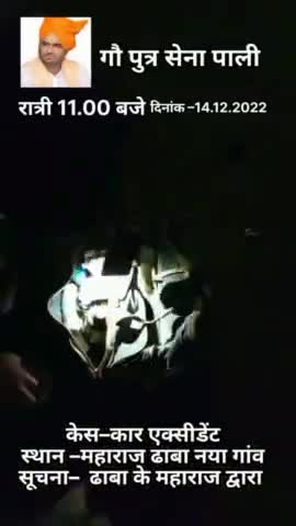 पाली: 🚩गौ पुत्र सेना पाली 🚩 दिनांक,14.12.2022 */✍️सूचना देने वाले –गौ भक्त महाराज *केस _ car एक्सीडेंट #गौसेवा #gaumata ा#