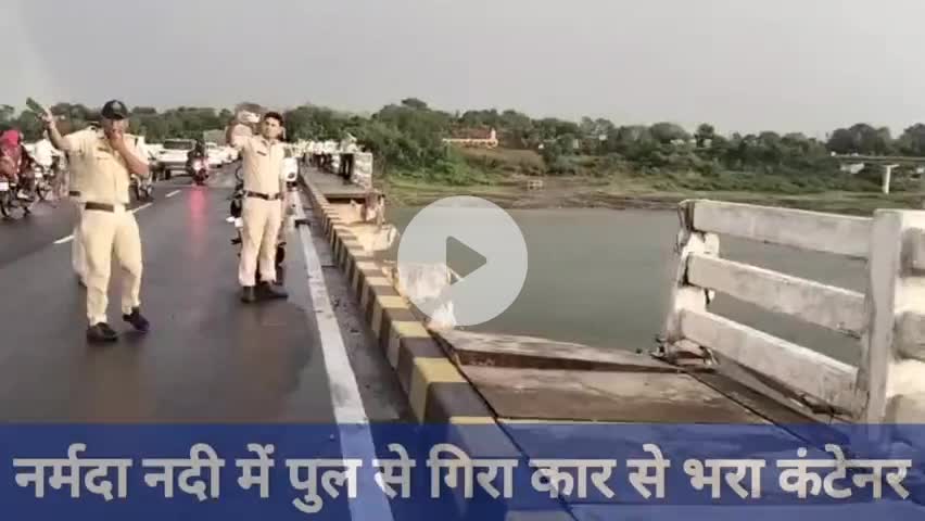 नर्मदा नदी में गिरा कार से भरा कंटेनर हादसा.... #Khalghat #NarmadaRiver #SanjaySetuBridge #RoadAccident #Dhar #Khargone
