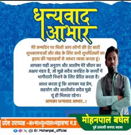 सादर धन्यवाद, आभार 🙏🏻 मेरे जन्मदिन पर बधाई देने वाले सभी बड़े भाई, छोटे भाई,बहनों,मित्रगण, सुभचिंतको का मैं दिल की अंतरिम गहराइयों से धन्यवाद देता हूँ।