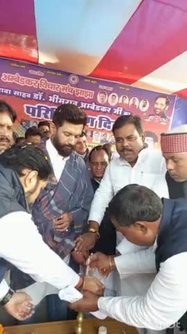 महापरिनिर्वाण दिवस के शुभ अवसर पर झाझा के अंबेडकर मंच पर जनता को संबोधित करने पहुंचे श्री चिराग पासवान एवम् कुंवर माधव सिंह