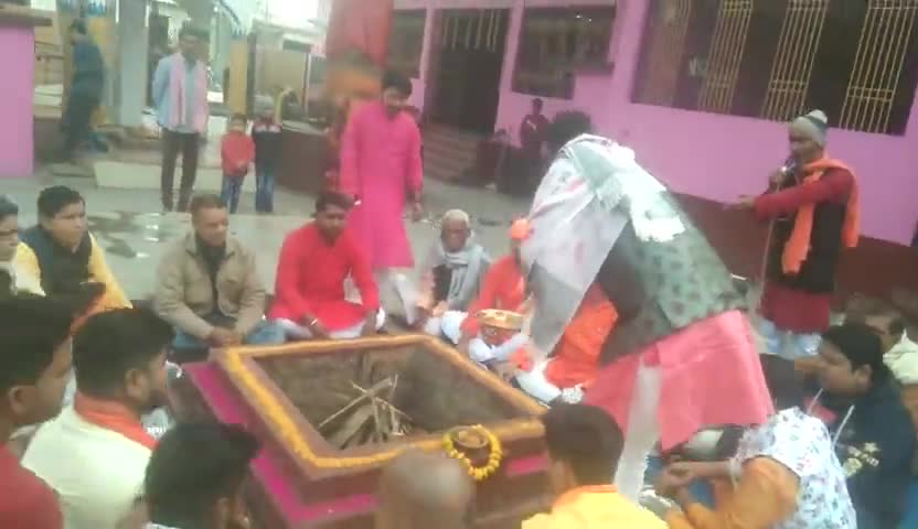 अयोध्या में हो रहे राम मंदिर प्राण प्रतिष्ठा के अवसर पर विहिप बजरंगदल महनार द्वारा संगत मंदिर में किया गया हवन