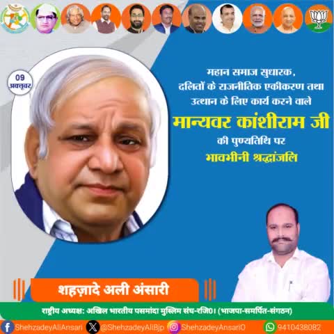 महान समाज सुधारक, दलितों के राजनीतिक एकीकरण तथा उत्थान के लिए कार्य करने वाले मान्यवर कांशीराम जी की पुण्यतिथि पर भावभीनी श्रद्धांजलि💐