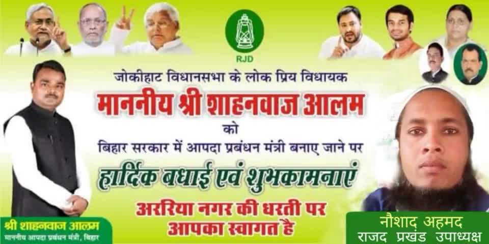 प्रिय साथियों, कल दिनांक 20 अगस्त शनिवार को बिहार सरकार के आपदा प्रबंधन मंत्री शाहनवाज आलम जी का अपने गृह जिला अररिया आगमन हो रहा है। जिसका कार्यक्रम निम्न प्रकार है। 11:00 AM नरपतगंज 12:00AM फोरबिसगंज
