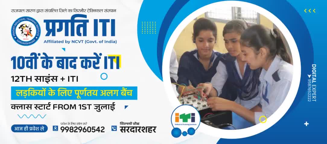 प्रवेश प्रारम्भ सत्र 2023 ट्रेड -इलेक्ट्रीशियन लड़कियों के लिए पूर्णतय अलग बेंच। प्रगति आईटीआई सरदारशहर 9982960542