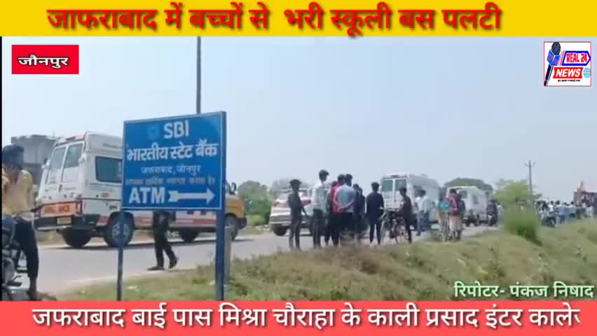 जौनपुर: जफराबाद बाई पास मिश्रा चौराहा के पास काली प्रसाद इंटर कालेज की बच्चो से भरी बस पलटी!!