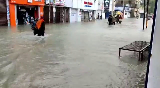 ये हालत हैें बिहार के शहर बेतिया के। बारिश का पानी शहर के बैंक में भी भर गया है। #बारिश #बिहार