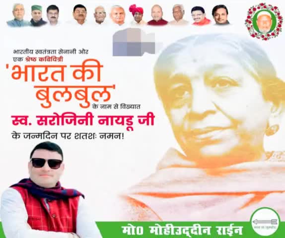 देश की प्रथम महिला राज्यपाल, राजनितिज्ञ, महान स्वतंत्रता सेनानी, सुप्रसिद्ध कवियित्री एवं भारत कोकिला श्री मती सरोजिनी नायडू जी की जयंती पर सादर नमन 🙏 #राष्ट्रीय_महिला_दिवस_की_शुभकामनाएं 🌹