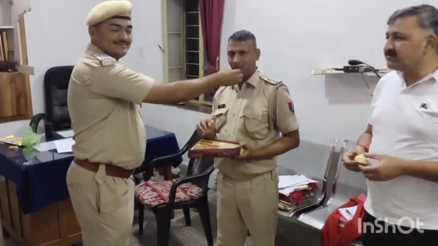 बांसवाड़ा: राजतालाब चौकी के थाना घोषित होने पर शहर कोतवाल ने मिठाई खिलाकर नए एसएचओ का किया स्वागत