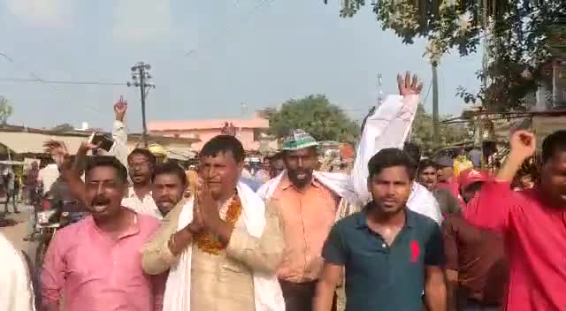करपी: रालोसपा प्रत्याशी किंजर बाजार में जनसंपर्क करते हुए