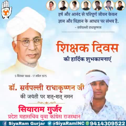 भारत के द्वितीय राष्ट्रपति, भारत रत्न डॉ. सर्वपल्ली राधाकृष्णन जी की जयंती पर सादर नमन एवं शिक्षक दिवस की हार्दिक शुभकाम