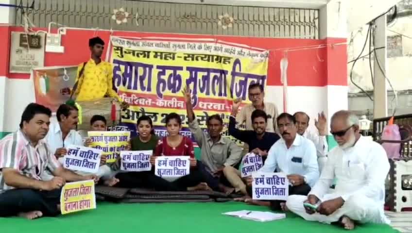 सुजानगढ़: गांधी चौक में सुजला महासत्याग्रह का लगातार 162 दिनों से जारी रहा धरना, जिले की मांग को लेकर की नारेबाजी