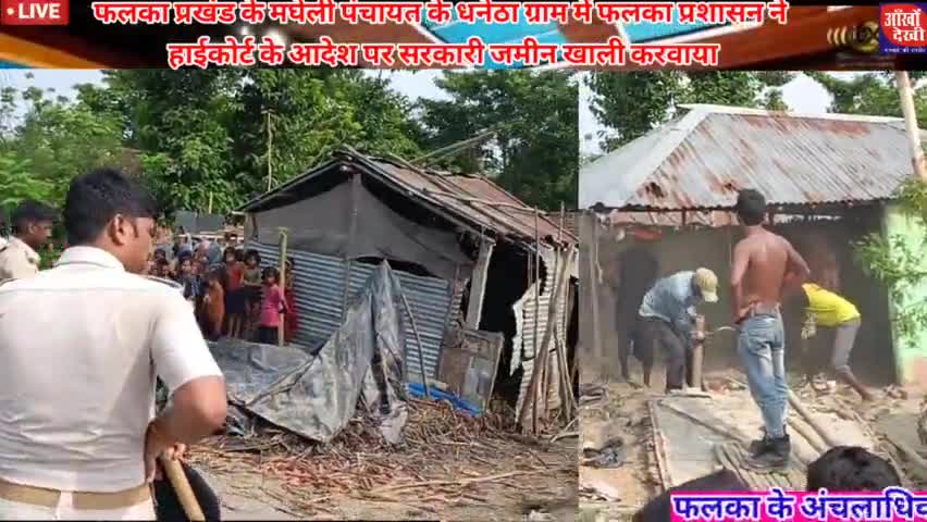 फलका प्रखंड के मधेली पंचायत के धनेठा ग्राम में हाई कोर्ट के निर्देश पर सरकारी जमीन अतिक्रमण मुक्त कराया गया