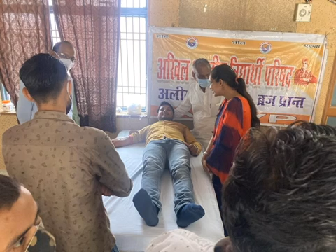 अखिल भारतीय विद्यार्थी परिषद अलीगढ़ महानगर के द्वारा विद्यार्थी परिषद के 73 वें स्थापना दिवस के साप्ताहिक कार्यक्रम के अंतर्गत मलखान सिंह जिला चिकित्सालय में रक्तदान किया। #जय_यादव