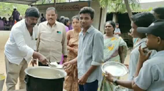 మండవల్లి జడ్పీ ఉన్నత పాఠశాలలో మధ్యాహ్న భోజనాన్ని పరిశీలించిన గ్రామ సర్పంచ్ మెండ ఝాన్సీ