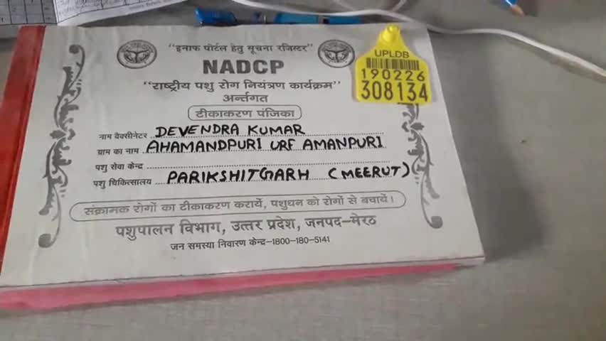 मवाना: गाव अहमदपुरी उर्फ अमनपुरी मे वैक्सीनेटर देवेन्द्र सिंह व सहायक सुखविर सिंह जी ने पशुओं के fmd टीके व पशु टैगिंग की