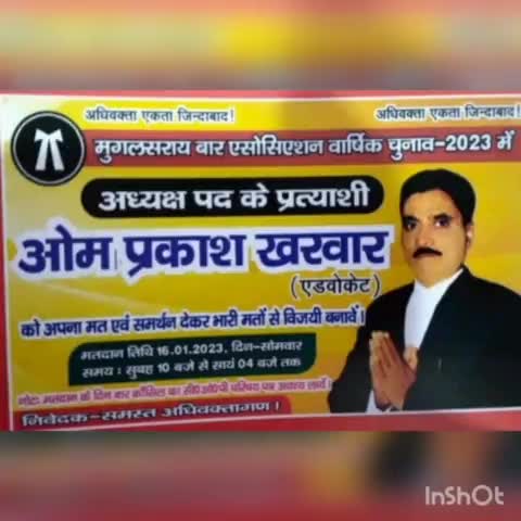 समस्त सम्मानित अधिवक्तागण से अपील है कि मुगलसराय बार एसो०चुनाव में अध्यक्ष पद हेतु श्री ओम प्रकाश खरवार जी को चुनें।