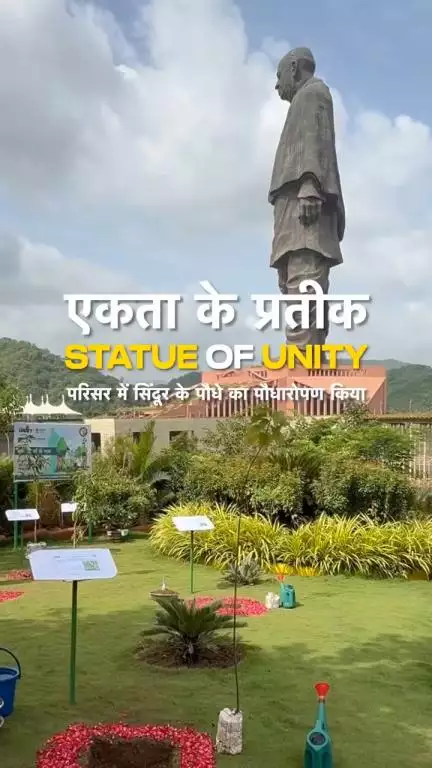 एकता की धरती पर पर्यावरण संरक्षण का संकल्प! 𝐒𝐭𝐚𝐭𝐮𝐞 𝐨𝐟 𝐔𝐧𝐢𝐭𝐲 परिसर में सिंदूर के पौधे का रोपण किया। #annapurnadevi