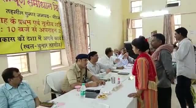 डीएम प्रवीण कुमार लक्षकार व पुलिस अधीक्षक संतोष कुमार मिश्र द्वारा तहसील चुनार में जन समस्याओं को सुनते हुए।