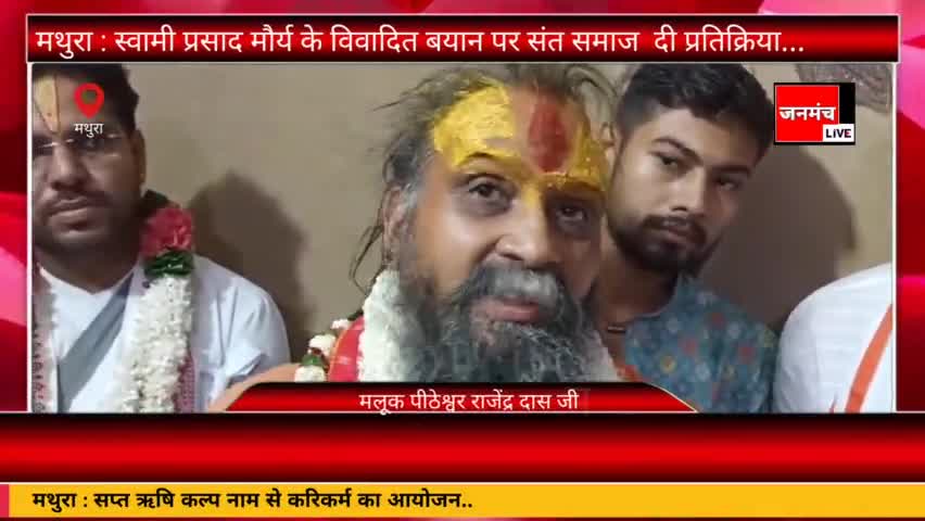 स्वामी प्रसाद मौर्य के बयान संत समाज ने दी प्रतिक्रिया मलूक पीठेश्वर राजेंद्र दास जी महाराज