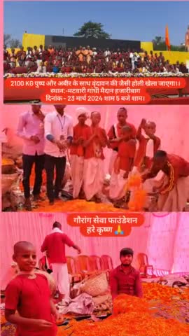 आज गांधी मैदान में शाम पांच बजे 2100 किलो पुष्प और अबीर के साथ वृंदावन जैसी होली खेला जाएगा। सभी कोई पहुंचे।