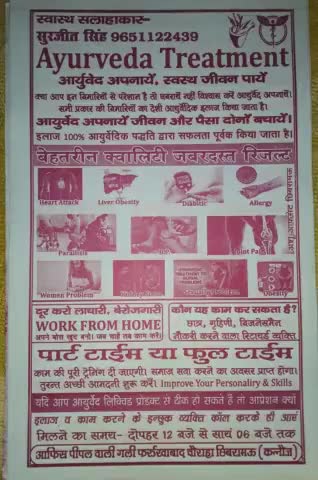 AYURVEDA TREATMENT हेल्थ इन वेल्थ स्वास्थ्य सलाह सही @इलाज# पीपल वाली गली फर्रुखाबाद चौराहा🏥 छिबरामऊ