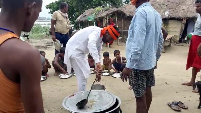 आज से अपने निजी व्यवस्था से बाढ़ पीड़ितों के भोजन की सुरूवात करते क्षेत्रीय प्रभारी व पार्षद पति विकाश शर्मा।