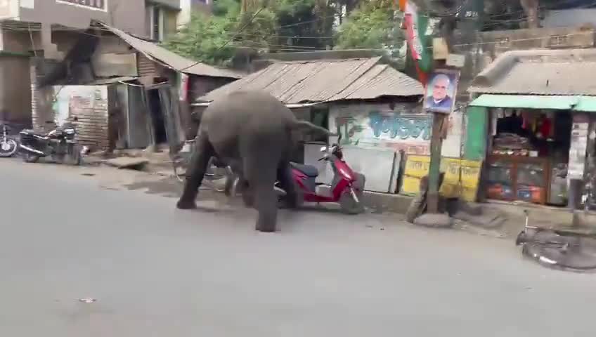 हाथी ने बाजार में जमकर मचाया उत्पाद