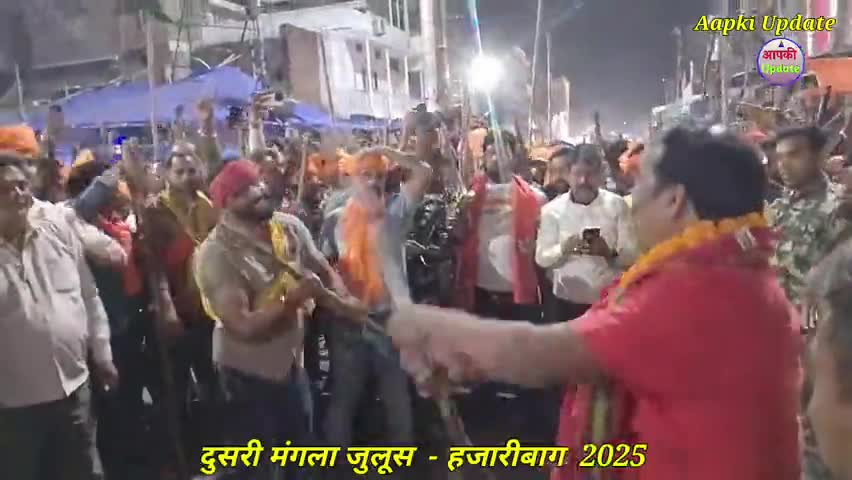 हजारीबाग रामनवमी दुसरी मंगला जुलूस में रामनवमी अध्यक्ष बसंत यादव और हजारीबाग सदर विधायक प्रदीप प्रशाद जी झंडा चौक में