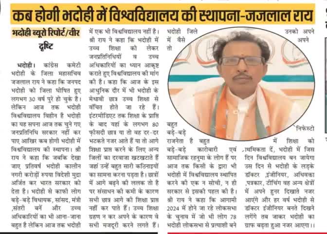भदोही में कब होगा विश्वविद्यालय#जिला महासचिव#जजलाल राय...9454185107
