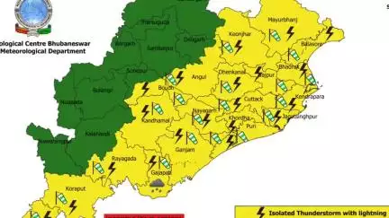 ନୟାଗଡ: ଜିଲ୍ଲାକୁ ବିଜୁଳି ଘଡଘଡି ସହ ବର୍ଷା ହେବା ନେଇ ଆସନ୍ତାକାଲି ସକାଳ ୮.୩୦ ମିନିଟ ପର୍ଯ୍ୟନ୍ତ ୟେଲୋ ୱାର୍ଣ୍ଣିଂ ଜାରି