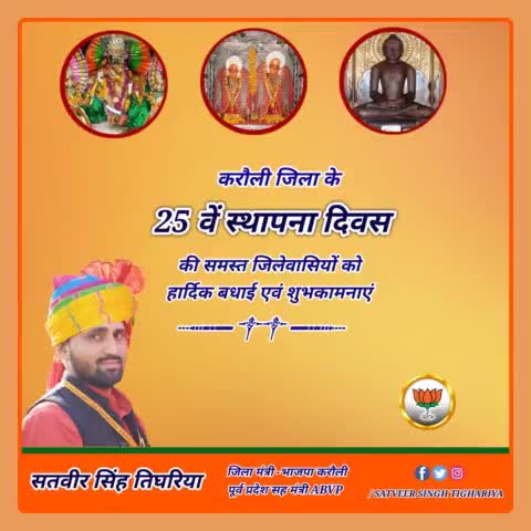 करौली जिला के 25 वें स्थापना दिवस की समस्त जिलेवासियों को हार्दिक बधाई एवं शुभकामनाएं।