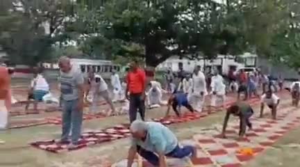 जूनियर हाई स्कूल के प्रांगण में योग शिविर आयोजित
