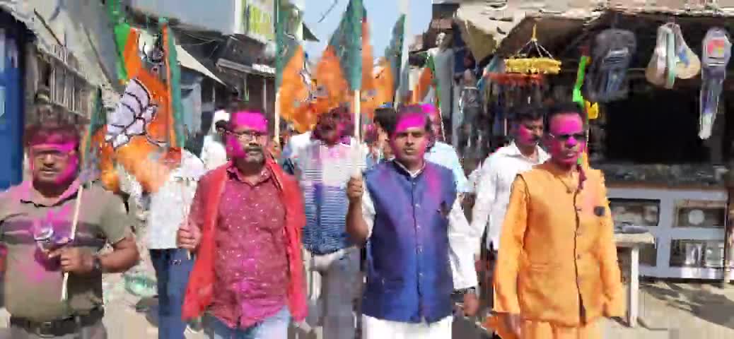 #UP उत्तराखंड गोआ एवं मणिपुर में ऐतिहासिक जीत पर पुरैनी बाजार में भाजपा कार्यकर्ताओं द्वारा विजय जुलुश निकाला गया।।